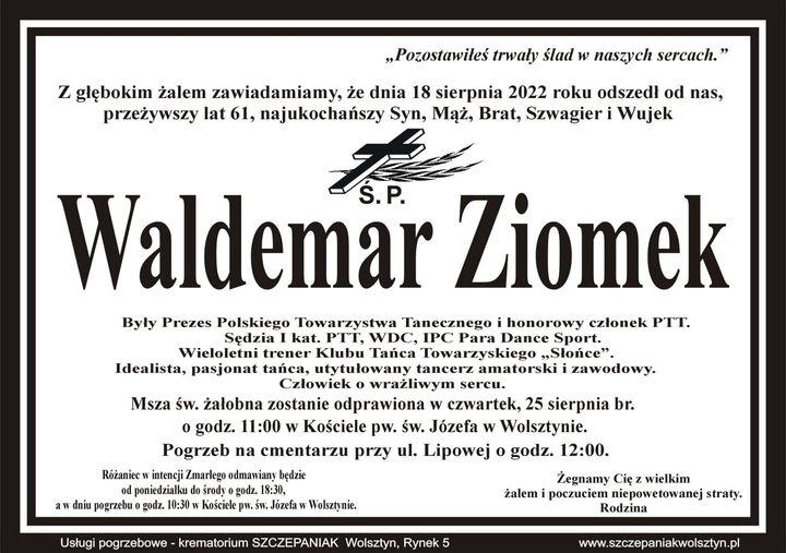 Z wielkim smutkiem informujemy, że w dniu 18.08.2022 odszedł niespodziewanie były Prezes Polskiego Towarzystwa Tanecznego, wieloletni członek Zarządu Głównego, Członek Honorowy PTT, Trener, Sędzia i wspaniały człowiek – Waldemar Ziomek. Wyrazy współczucia dla Rodziny i Bliskich – Zarząd PTT Okręg Świętokrzyski